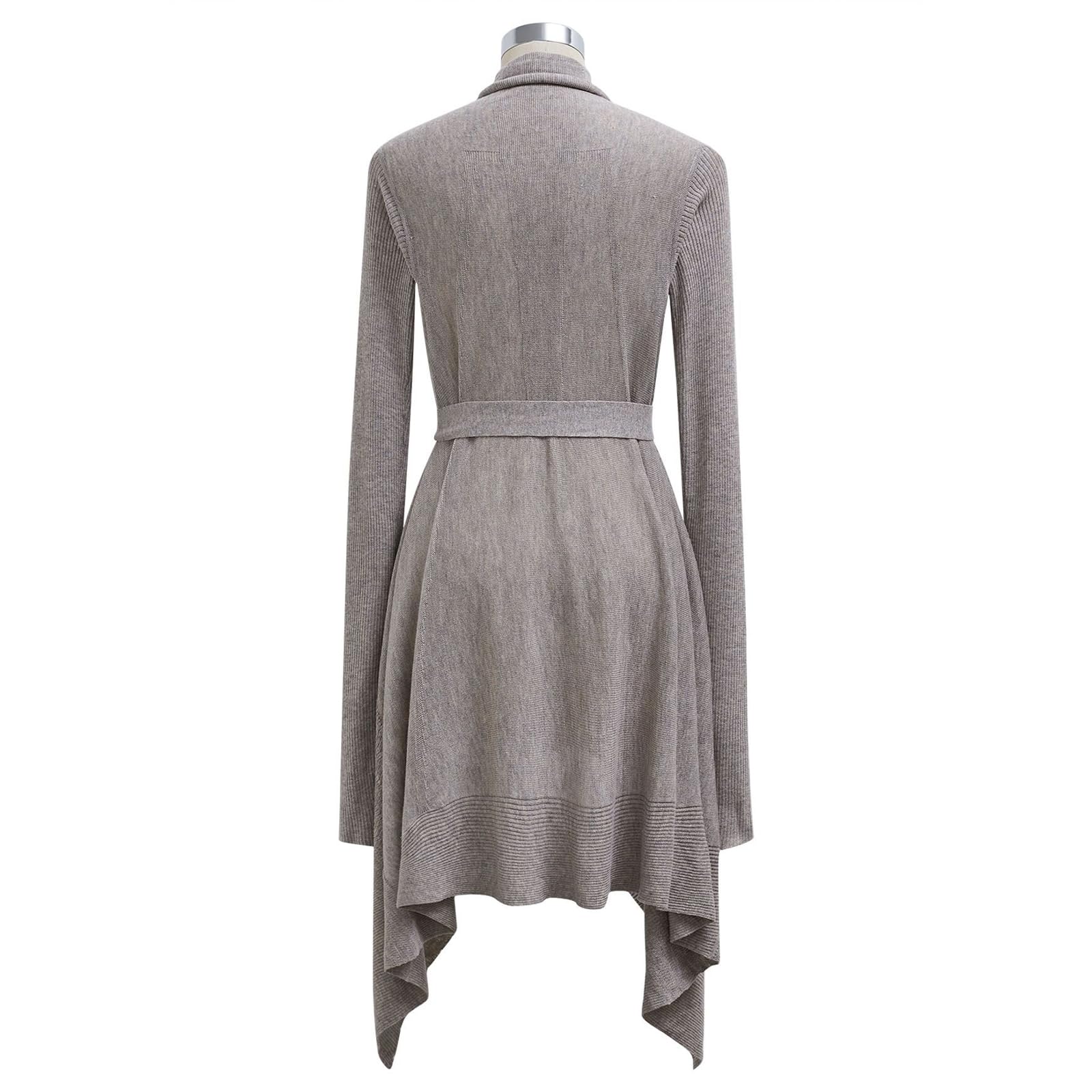 CHICWISH Women Lightweight Open Front Knit Cardigan Soft Casual Long Sleeve Asymmetric Hem Belted Long Duster Cardigans—