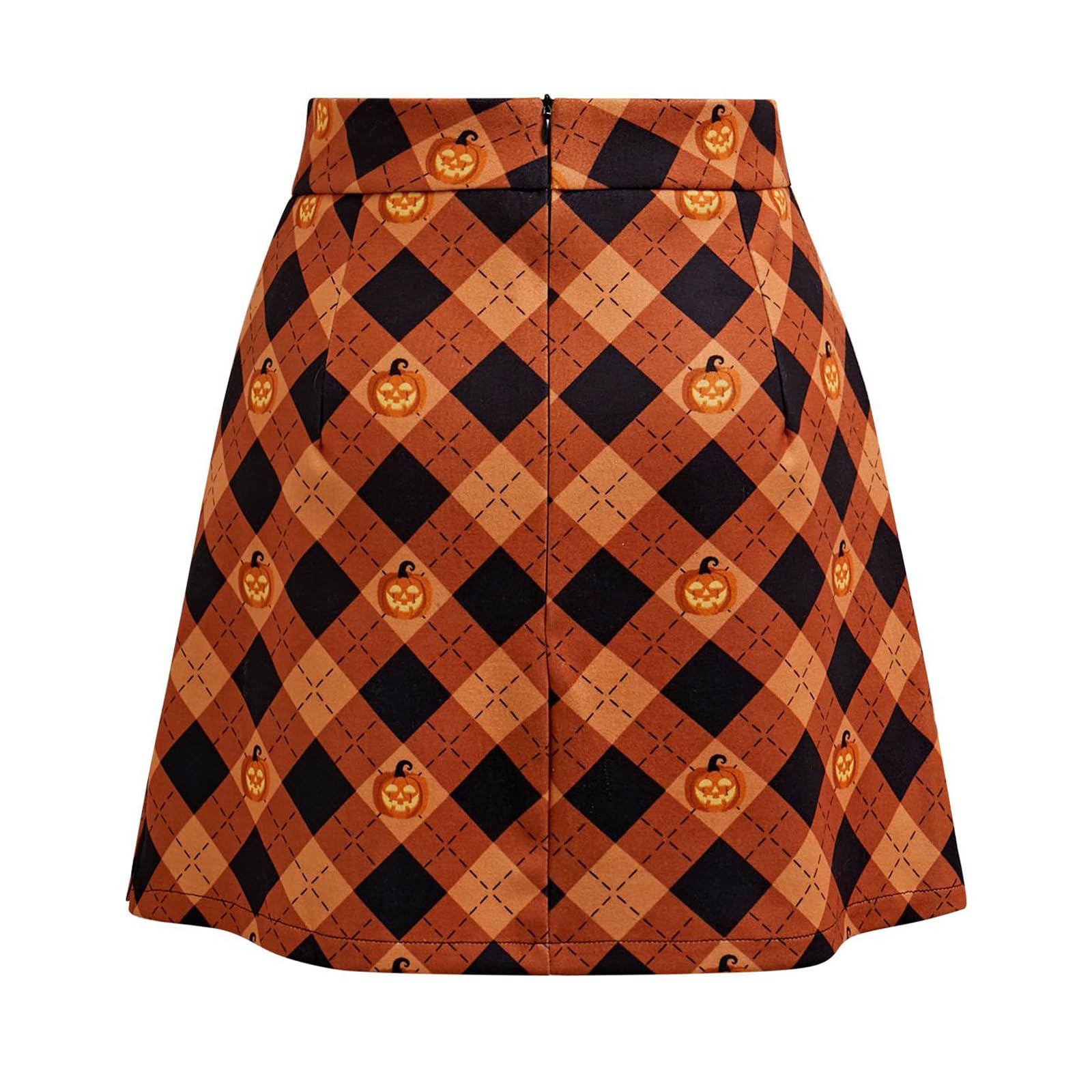 CHICWISH Women Plaid Mini Bud Skirt Pumpkin Lantern Pattern High Waist A Line Halloween Party Grid Bodycon Pencil Short Skirt—
