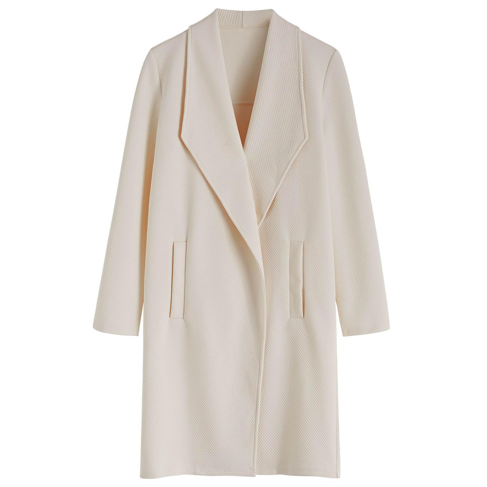 CHICWISH Women's Black/Brown/Oatmeal/Ivory Lapel Open Front Quilted Wide lapel Cotton-Blend Coat