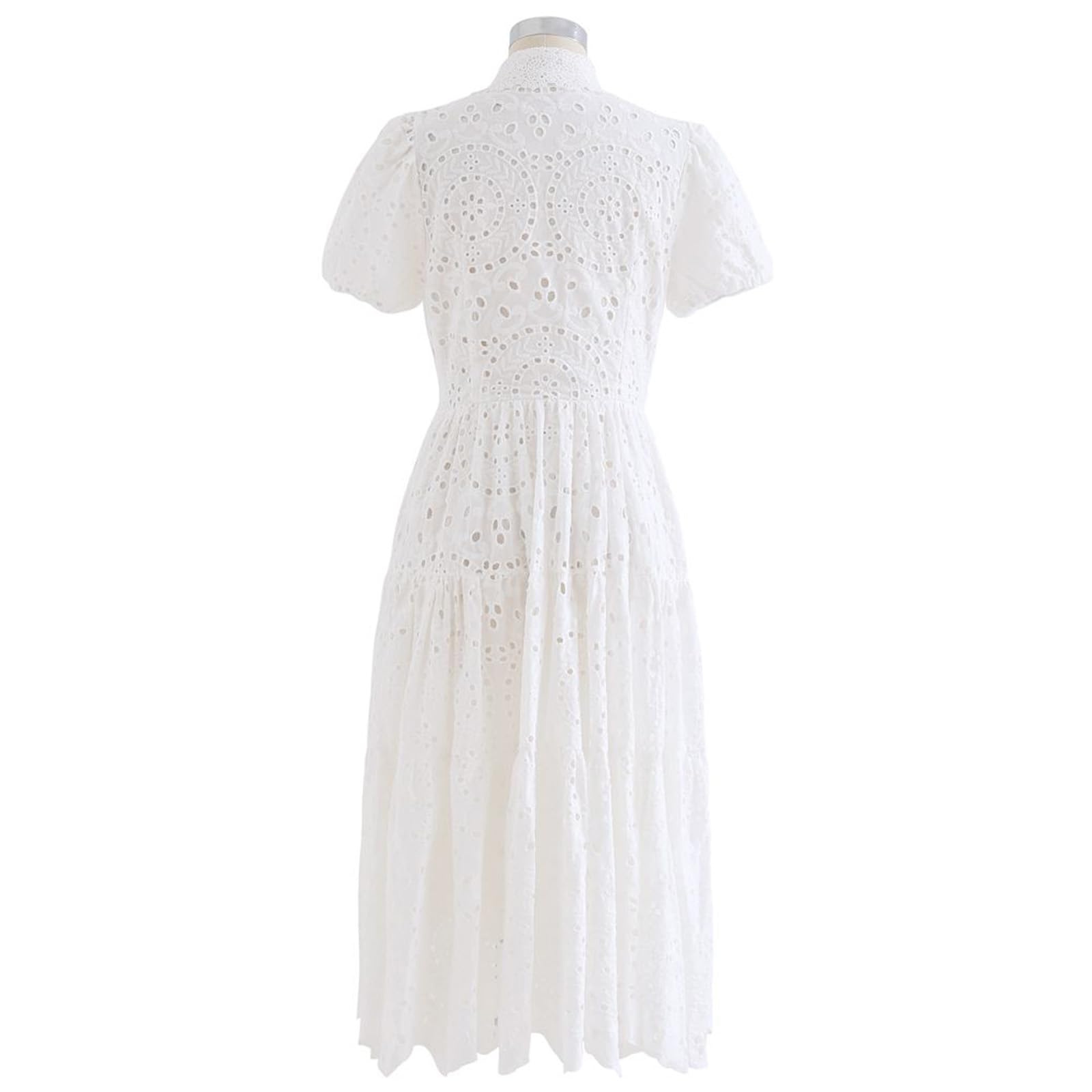 CHICWISH Women Short Sleeves Cotton Midi Dress Crochet Collar Embroidered Eyelet Button Down Casual White Long Dress
