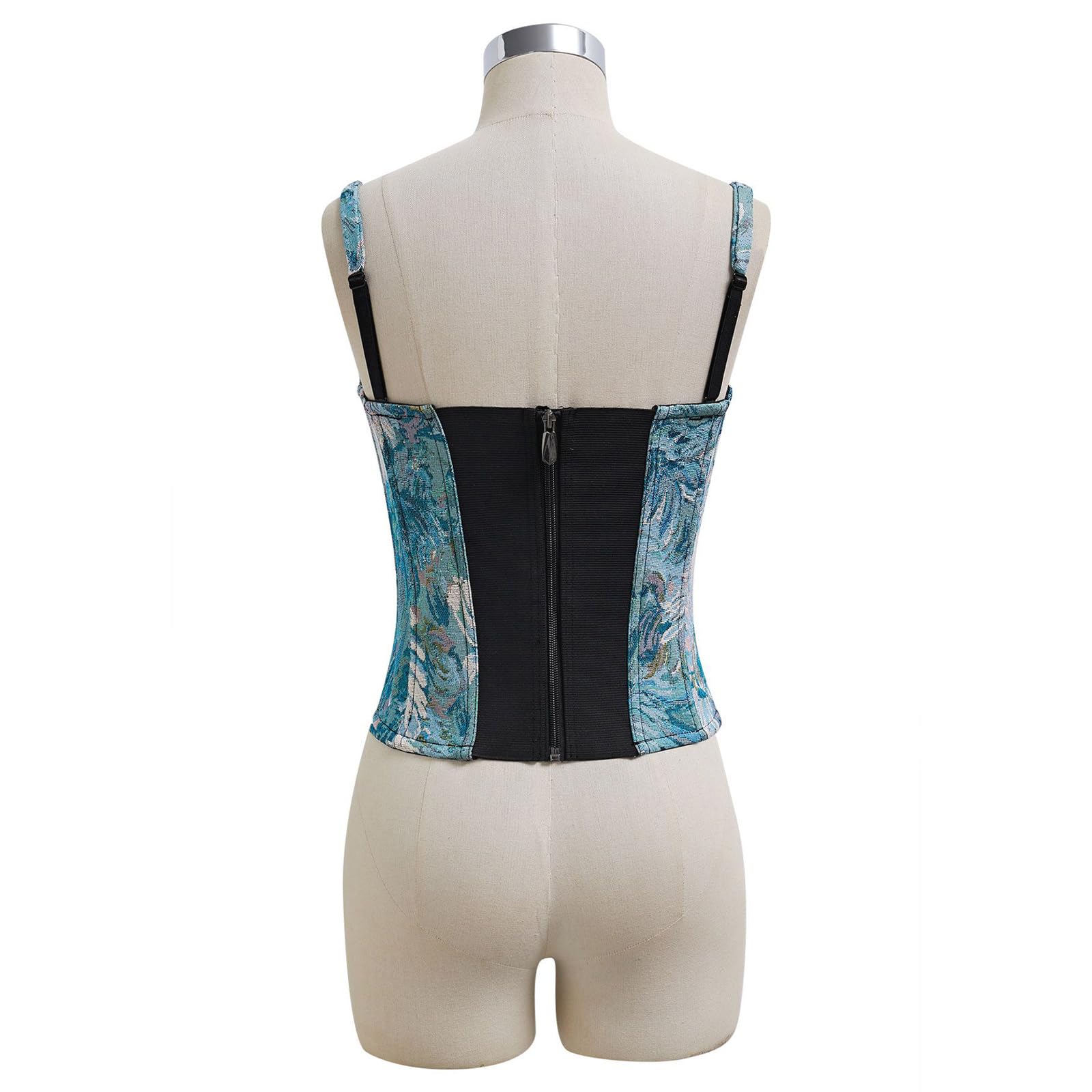 CHICWISH Women Vintage Flower Canvas Bustier Top Sexy Push Up Corset Top Going Out Garden Party Cropped Tops—